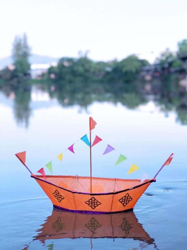 In Thailand en Laos, en in delen van Myanmar en Maleisië, viert men Loy Krathong, soms geschreven als Loi Krathong. In het Thaise geloof zijn er vijf godinnen, die de vijf elementen vertegenwoordigen. Loy Krathong is een dankzegging aan Phra Mae Khongkha, de godin van het water. Daarmee is ook direct de overeenkomst met Divali duidelijk, want ‘Khongkha‘ betekent ‘Ganges‘, de heilige rivier van de Hindoes. Mae Khongkha is dan ook dezelfde godin als de Hindoestaanse riviergodin ‘Ganga’. De laatste week van oktober en de eerste drie weken van november vormen duang sipsong, de twaalfde maanmaand. Het regenseizoen is dan achter de rug, maar door het hoogstaande water zijn er regelmatig overstromingen. Dit heet ‘na naam‘, het hoogwaterseizoen. Phra Mae Khongkha heeft de bevolking regen gegeven, zodat er voldoende drinkwater is en de gewassen kunnen groeien, en zij beschermt de bevolking tegen de gevolgen van de overstromingen. Loy Krathong is na Songkran, het Thaise nieuwjaar, het meest populaire feest in Thailand. De oudste schriftelijke vermelding van Loy Krathong dateert uit 1904, een vermelding in de ‘Guide to Bangkok and Siam‘ van J. Antonio, maar er wordt verondersteld dat het feest al tenminste 150 jaar wordt gevierd, mogelijk zelfs veel langer. Dat is niet ondenkbaar. Tegenwoordig is Loy Krathong een festival en worden bezoekers van harte uitgenodigd om te komen kijken, maar vroeger was het vooral een religieuze beleving voor de eigen boeddhistische gemeenschap. Het was destijds gebruikelijk om daar zo min mogelijk publiciteit aan te geven, om inmenging van buitenaf te voorkomen.